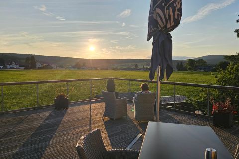 In unserem Bistro erwartet euch eine bodenständige, regionale Küche – so, wie man sie hier im Fichtelgebirge gern hat. Drinnen stehen 40 gemütliche Plätze bereit, und wenn das Wetter passt, könnt ihr euren Abend ganz entspannt auf unserer Bistroterrasse mit weiteren 40 Sitzplätzen ausklingen lassen.